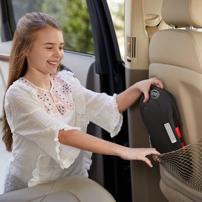 The graco rightguide describes itself as a seat belt trainer. this handy trainer is a highly portable booster seat that tucks tidily into a backpack.